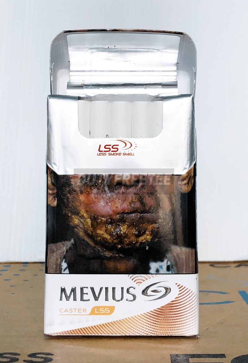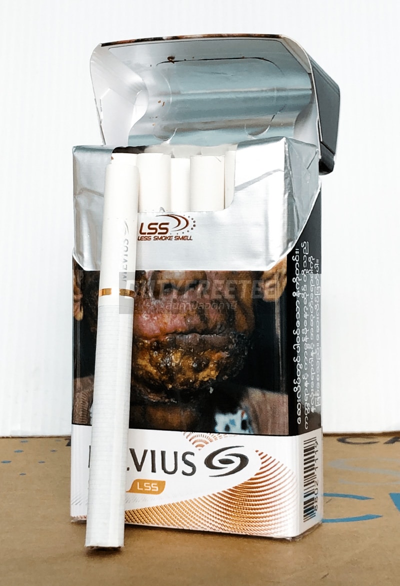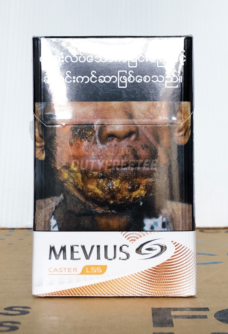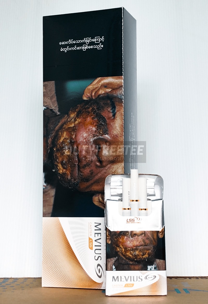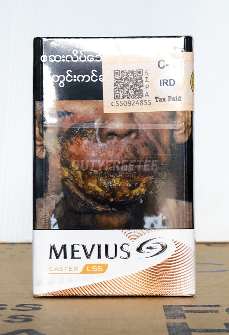 จากบริษัท Mevius (JT International) ที่เข้าไปตั้งฐานผลิตในกรุงเมือง Yangon ประเทศ Myanmar จะเป็นมาตรฐานสากลภายใต้กฎหมายของประเทศ Myanmar เลยต้องมีแสตมป์ Tex Paid ติดไว้ของประเทศเขา และรูปแบบ Product คำเตือน น่ากลัว เหมือนในบ้านไทยเรา