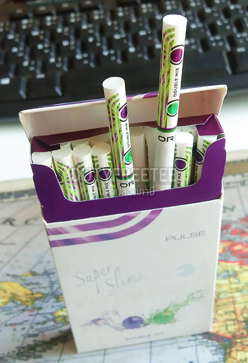 กับความเย็นสุดๆสดชื่นบวกกับความหอมของกลิ่นบลูเบอร์รี่และเมนทอลอย่างชัดเจน มีความแรงในระดับกลางๆ มี 2 เม็ดบีบ ใบยาดีมากๆดีเยี่ยม ตัวมวนขนาดเล็กสลิม
